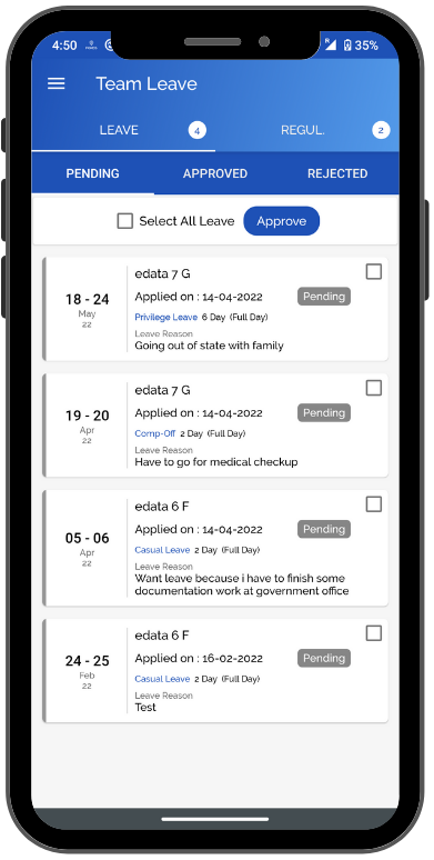 Track your employees in the office as well as in fields using the app only. Biometric machines not needed anymore.